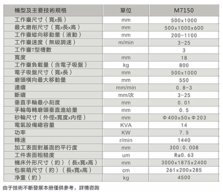 工作精度:加工工件等厚度 0.015mm/1000mm;局部0.008mm/300mm